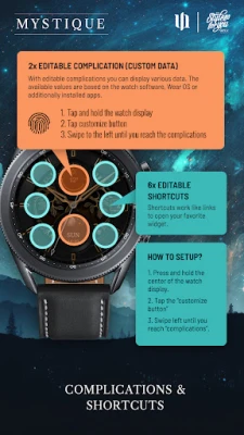 Experience the luxurious elegance of our S4U Mystique Watch Face! Our realistic analog design features stunning gold color with a hint of mystical elements, making it the perfect accessory for any occasion. Customize the style to your liking with multiple options. Enjoy two custom complications and six custom shortcuts, providing quick access to important information. Stay in sync with the moon cycle, prominently displayed on the watch face. Download now and add a touch of glamour to your wrist!