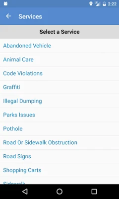 The app: GPS identifies your location; Add a photo to your service request/issue; Routed automatically to departments for resolution
