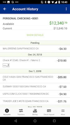 *Check your account balances *View recent transactions *Transfer money between your accounts *Pay bills *Find ATMs and branch locations * Use Wear OS