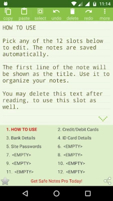 Android's tiniest (just 2mb!) Notepad with password protection. It is simple to use and ad-free.