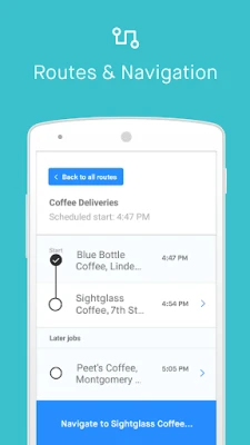 Keep everyone in sync with our routing and messaging features providing up-to-the-minute arrival information and ETAs, information for drivers about upcoming stops on a route, and safety-first instant messaging.