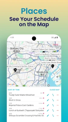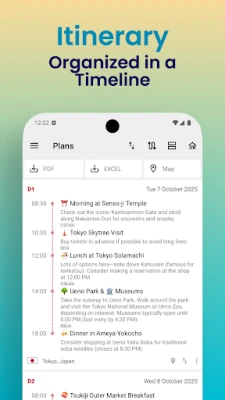 Easily organize your travel plans in a clear, time-based layout.