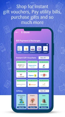 • Shop and Save on E-Store: Pay your utility bills such as electricity, insurance premiums, mobile recharges. Shop for Instant Vouchers of top brands, complete your travel bookings, buy personalized gifts, flowers and cakes and so much more.