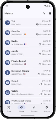 • Keep track of all your scanned barcodes with the history tool.
