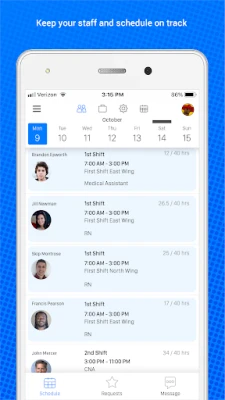 - View any day’s schedule and see who’s supposed to be on-site