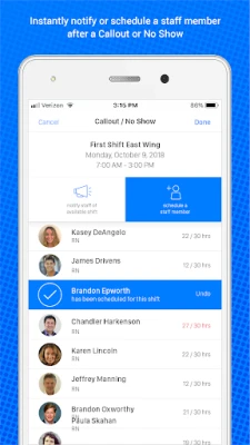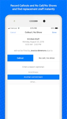 - Register call outs and no call/no shows, and find replacements instantly