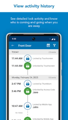 - Use the history log to see activity at your lock
