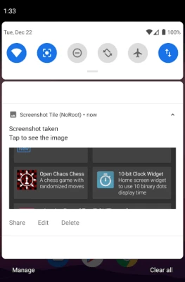 ✓ Only take screenshot of a specific area of the screen (long-press the tile)