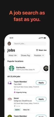 Apply to local opportunities with a single tap, schedule interviews in seconds, and keep your entire job search in your pocket.