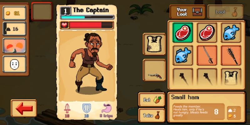 Enlist loyal crew mates to join you in this treacherous adventure, equip yourselves with weapons and the most important items - just don’t forget to gather enough food for the long and deadly voyage!