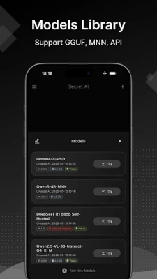 Optimized AI engines support both CPU and GPU acceleration with popular model formats including GGUF and MNN. Choose from various offline AI models based on your device capabilities for optimal local LLM performance. Advanced on-device AI processing delivers fast responses.