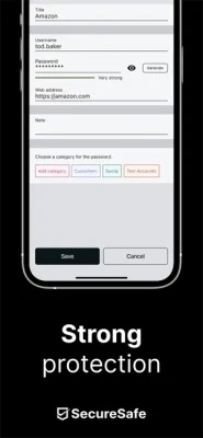 • Password manager: With the free version of SecureSafe, you can store up to 10 unique passwords. Simply use the integrated password generator to help you create strong passwords. Also enjoy offline access to your PINs, PUK etc. when saved in the password manager.