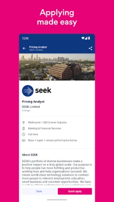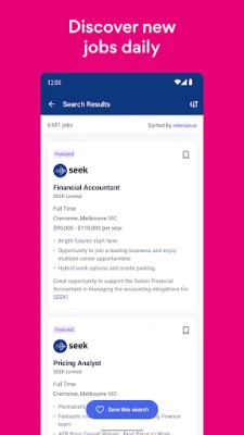 • Update your SEEK Profile directly in the app and let jobs that are tailored to your specific skills and experience find you