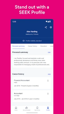 • A SEEK Profile helps tailor your search experience job recommendations to you –