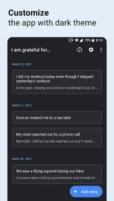 • Change color themes so you can personalize your gratitude journal and use your favorite colors