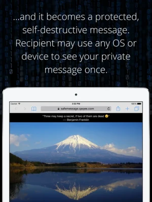 Send safe messages that self-destruct after seen once. Use with WhatsApp, SMS, Message, Email, Skype, Messenger and others. Recipient doesn't need to install anything.