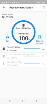 - Replacement status for Filters and Plasmacluster Ion Generating Unit