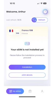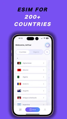 Effortless eSIM Purchasing: Find and purchase eSIMs tailored to your travel destination in seconds. Our intuitive design makes it easy to select the right data plan from a range of options for over 180 countries.