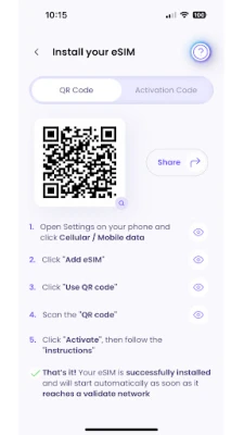 Automatic & Manual Installation Options: Install your eSIM with ease through automatic setup, or opt for manual installation if you prefer. Share the QR code with family members for added convenience.