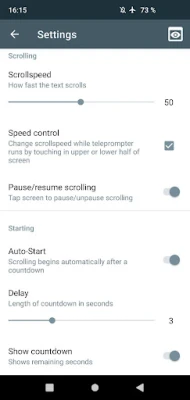 Customize the teleprompter to your needs: You can change the scrolling speed, font, colors and lots of other useful features such as auto-starting and mirroring or locking the orientation of your device.