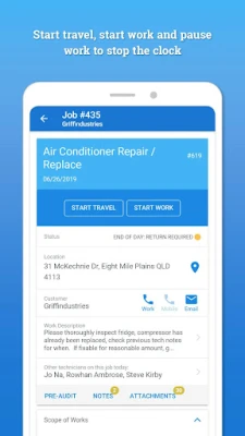 * Access site, customer and schedule notes along with other key details such as activities, job descriptions and cost centre information