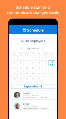 Managers can monitor attendance, review job progress, and create shift schedules on the go.
