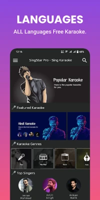 Search Karaoke: You can search any languages karaoke with SingStar Pro, It's easy to use Free Karaoke app. All Singer Karaoke available in this app.