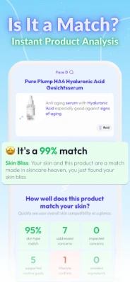 Scan barcodes, paste ingredient lists or search 100 k+ products to see if they match your skin and goals.