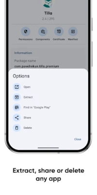 Extract your apps in APK and Split APK (APKS) formats and send them to your friends in any way you prefer. You can also uninstall any user apps without any problems.