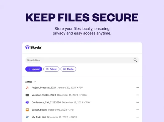 You need Skyda if you want to: - Chat and call securely with your friends and family. - Send and store files privately on only your device. - Hide your IP address and location. - Stay safe when using public Wi-FI or any other network. - Browse the internet without being tracked.