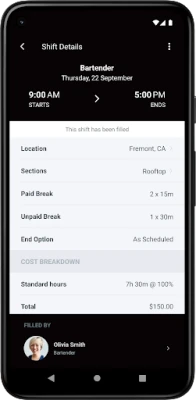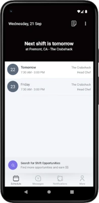 Employees can: · Receive real-time notifications of new and upcoming shifts · Search and apply for shift opportunities · Set times they are available (and unavailable) to work · Request time off