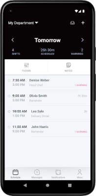 Managers can: · Create shifts and schedules in minutes · View and approve hours worked · Know who's available to work with availability management · Communicate with employees via group and private messaging
