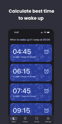 Features: - Sleek, fast material design - Calculate optimal wake-up or sleep times - Notifications for bedtime and wake-up - Includes time to fall asleep