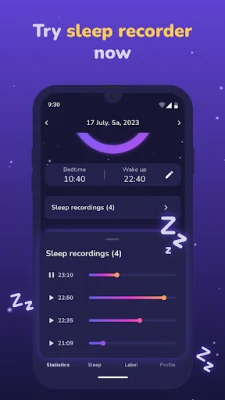 Track your sleep cycle with detailed stats powered by our sleep tracker free and sleep recorder. Internet required for full analytics.