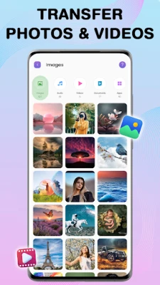 Data transfer app allows you to seamlessly send your photos and videos from one phone to another. All your data is secure when send and received.