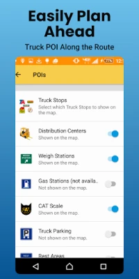 • Find Truck specific points of interest, truck stops, rest areas, repair facilities, weigh scales