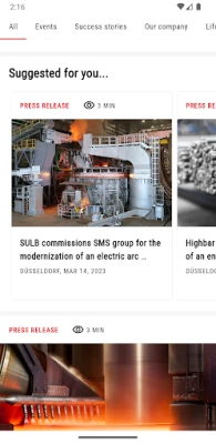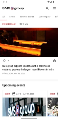 The SMS group #Connect App provides you with information about up-to-date news, orders, innovations, and events in and around SMS group. Get all the latest topics at a glance and filter the content based on what you want to read.