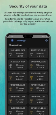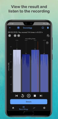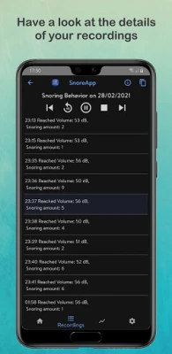 With SnoreApp you will get an overview about how often and how intensive you are snoring. SnoreApp selects uniquely only snoring for recording.