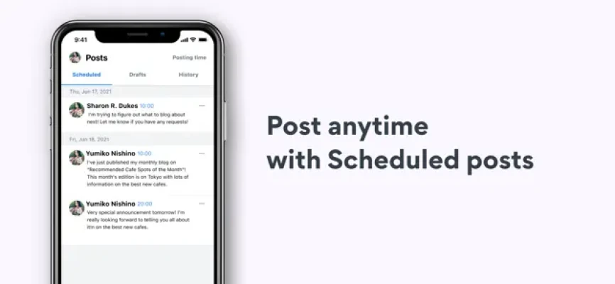 - Post automatically at a specified date and time.