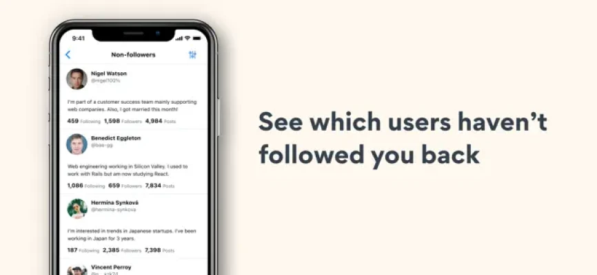 - See if users have followed you back or not at a glance.