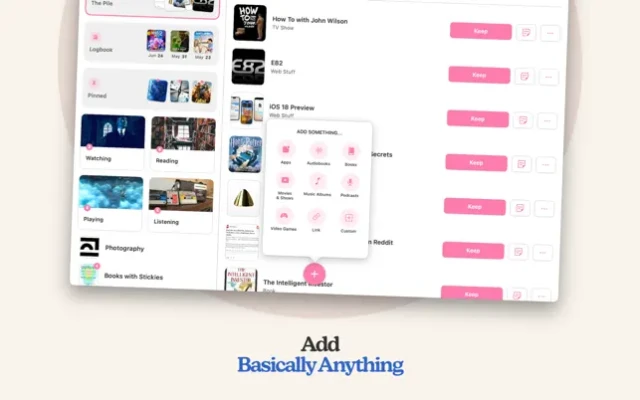 Create lists of things to watch, read, play, listen to, and more.