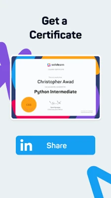 - Earn Certificates: Showcase your coding expertise with certificates from Sololearn. Perfect for your professional portfolio and advancing your tech career.
