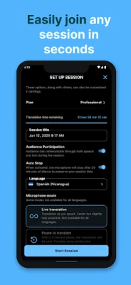Setup is simple. First, register for an account. Then you create a session and share the unique QR code or PIN with guests. Each person joins on their computer or mobile device — no other hardware required. The software is platform agnostic and supports mobile language translation via Apple iOS and Google Android smartphone, tablets, and laptop web browsers.