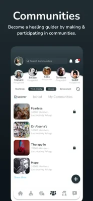 Global Communities: We believe that healing begins with connection and understanding. Our mission is to provide a platform for supportive community building where you can connect, share your experiences, and embark on a path to healing and personal growth.