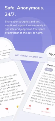 Share your struggles and get emotional support anonymously in our safe and judgment-free space at any hour of the day or night, absolutely free.