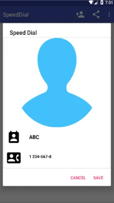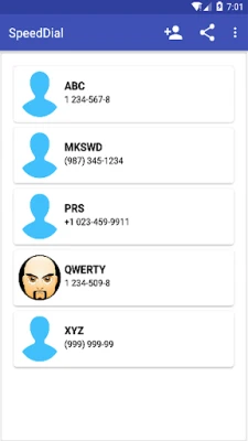 Images are automatically added for your favorite contacts if available in contact. Touch to call Unlimited no of contacts Swipe to Left will delete Speed Dial Contact Swipe to Right will Edit Speed Dial Contact