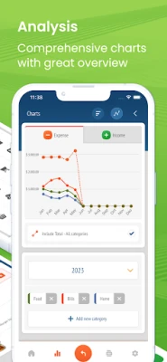 - comprehensive charts that allow you to understand your spending and follow your expenses based on categories that you've created