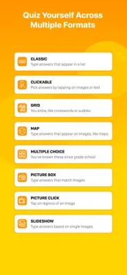 If you want an ad-free experience and access to advanced stats, upgraded search options, and special features, consider upgrading to Sporcle Orange - the app's premium subscription service. You can subscribe directly in the app, either monthly or yearly at a reduced rate. New features and experiences are added all the time!