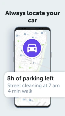The app automatically remembers your parking location using your car’s Bluetooth. It then sends you notifications when it’s time to move your car for street cleaning or any other street parking rule. If you don't have a car bluetooth you can still set your car location manually.
