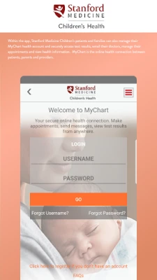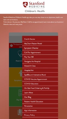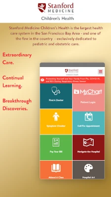 Stanford Children’s Health Mobile App includes a home app with access to number of mobile apps from within the home app for our patients and families to promote patient engagement and improve our patient and family experience. With our App, patients and families will be able to access their child's health information and can even upload vital signs for physician review.